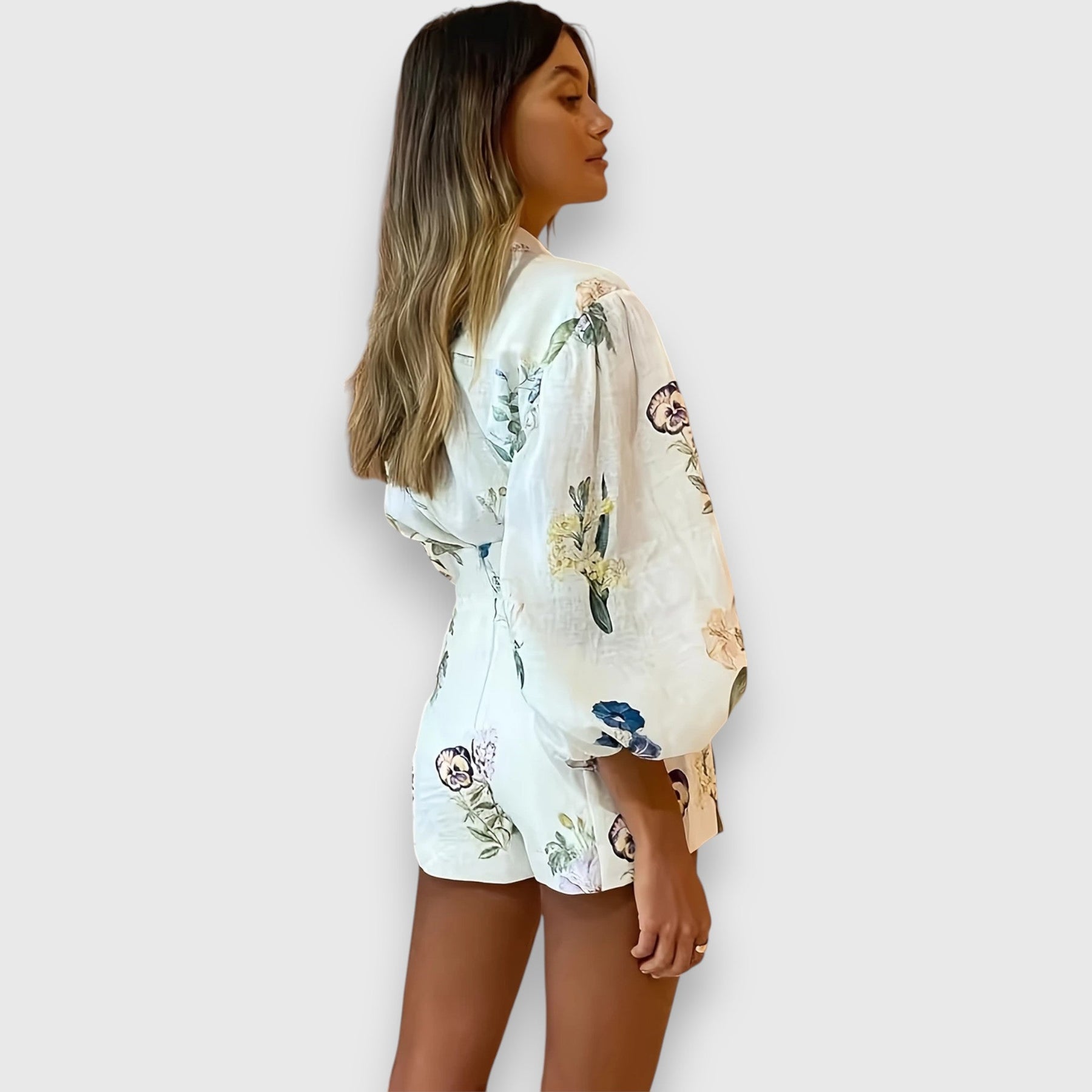 L'ensemble Liora apporte une touche de fraîcheur à ta garde-robe avec son motif floral vif et ses détails féminins. Idéal pour le printemps et l'été, il séduit par sa légèreté et sa coupe confortable et tendance.