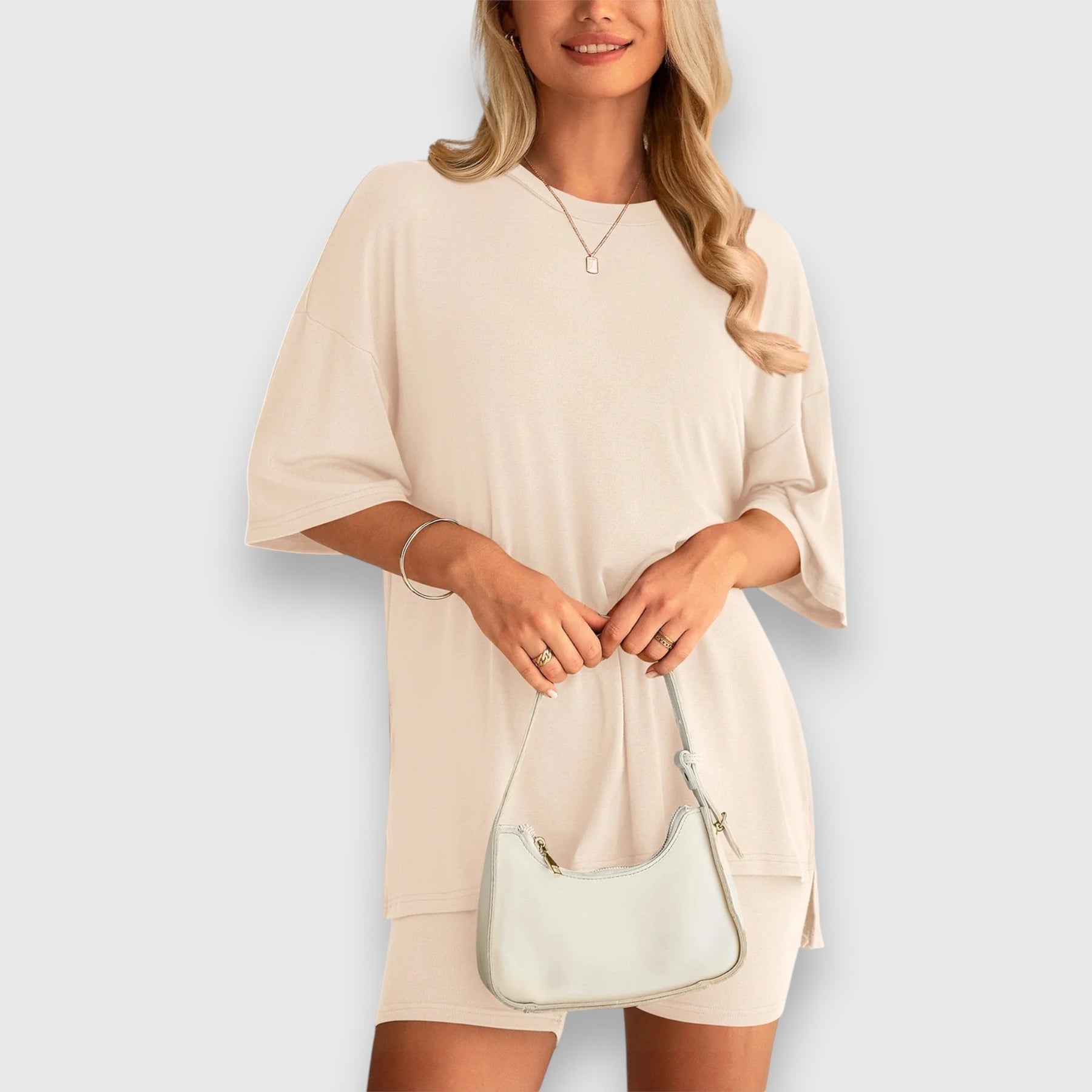 Tendance & confortable – T-shirt oversized rencontre un short ajusté taille haute.