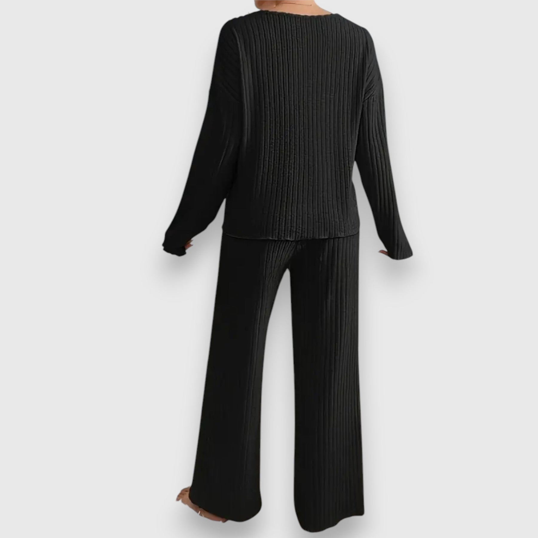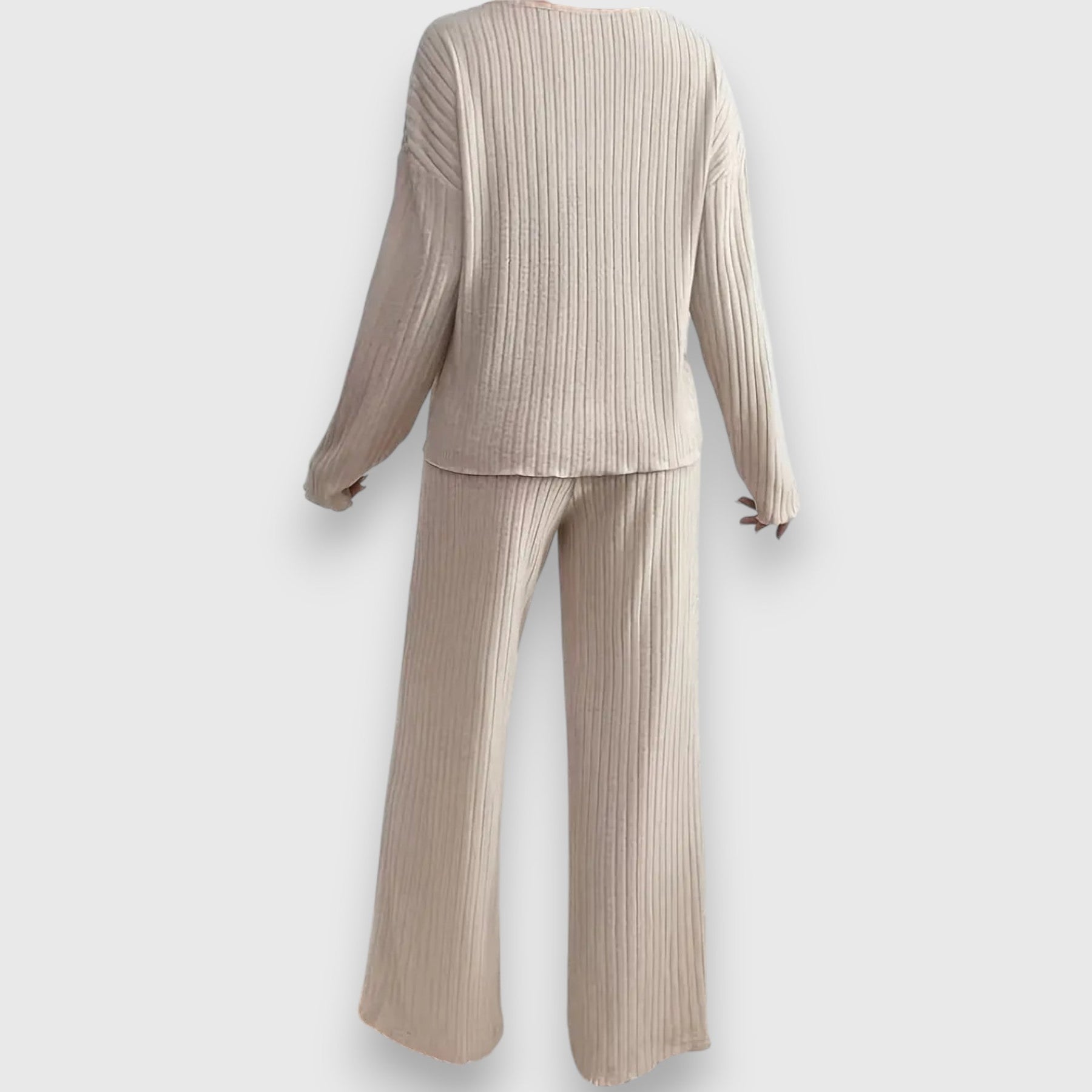 Ensemble confortable avec décolleté en V et manches longues. Parfait pour des journées détendues au printemps.