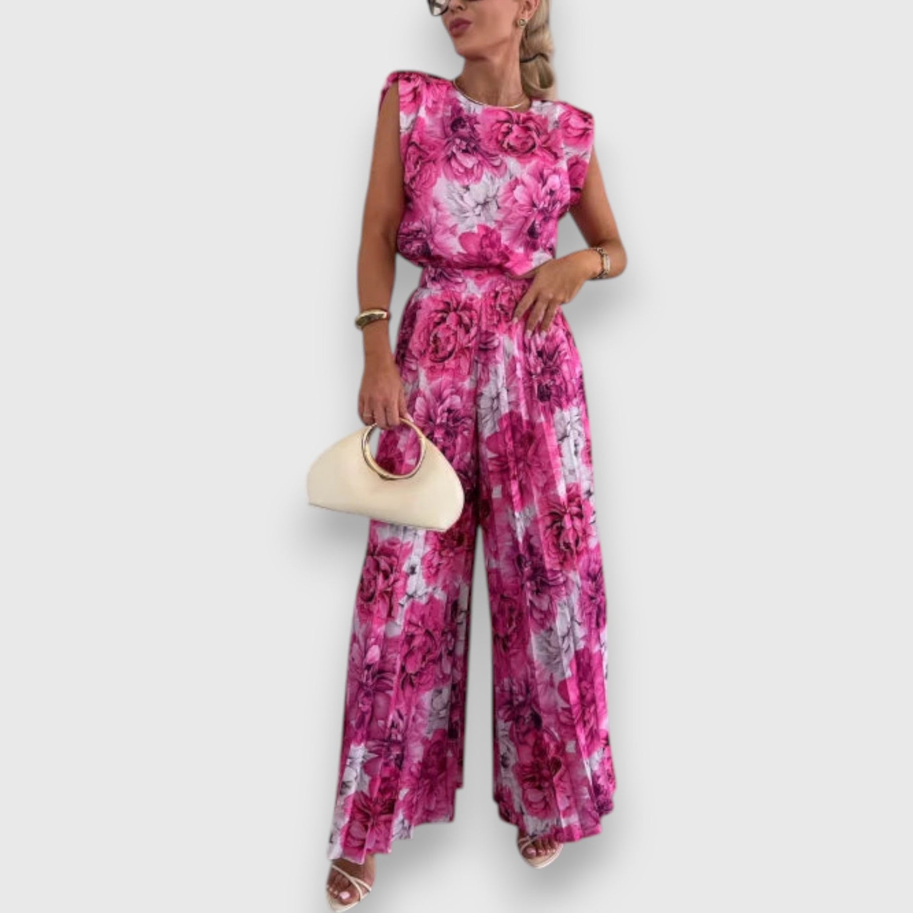L'ensemble Manja séduit par son élégance fluide et son style moderne – parfait pour des occasions spéciales, des dîners élégants ou un look quotidien stylé. La coupe féminine et le pantalon plissé qui tombe doucement créent une silhouette flatteuse avec un confort maximal.